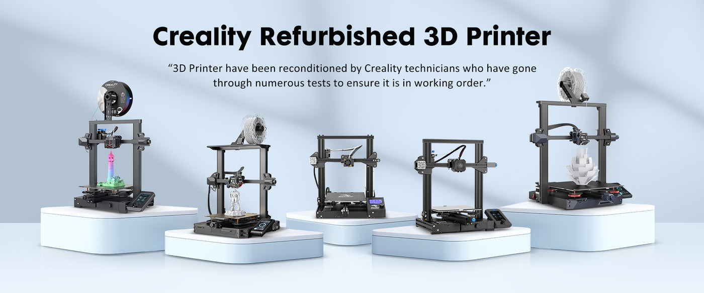 Refurbished/used 3D Printers are due to customer returns, open boxes, or store displays. The printers have been checked by Creality engineers and have passed a number of tests to ensure that they work normally. So buying cheap refurbished 3D printers is a good choice for 3D printing enthusiasts.
